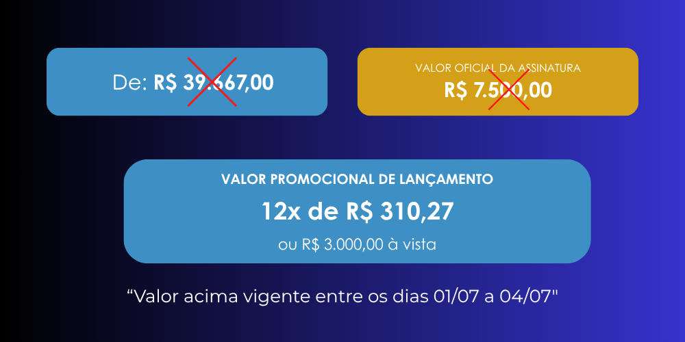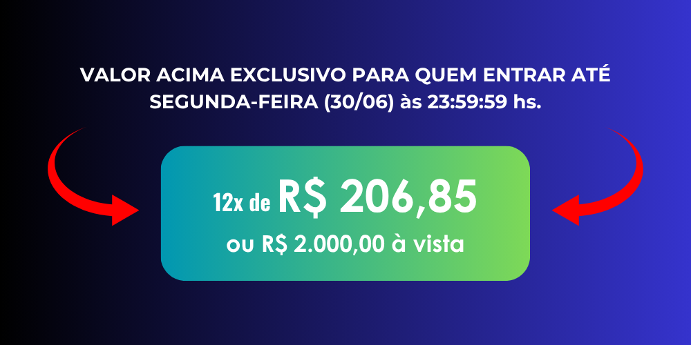 Obs. Os alunos da 1ª Turma serão contemplados com descontos exclusivos ao adquirir tais produtos/serviços.